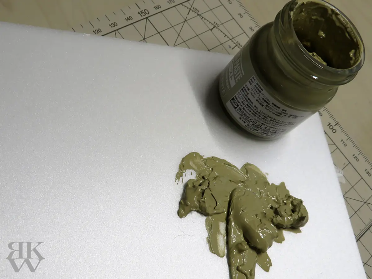 塗る前に、紙ヤスリの400番くらいで表面を荒らして、地の色で塗装してからペーストを盛った方が良い結果が出たと思う。
