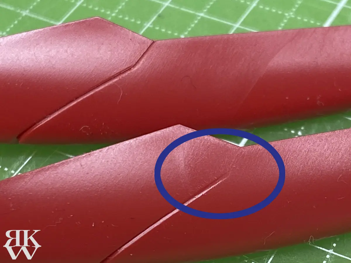 画像は、分かり易くするために先にやすり掛けしているけれど、スジボリを彫り直してから表面処理した方が、彫る場所が分からなくならないし、スジボリし直した後にまたヤスリを掛けなくていい。