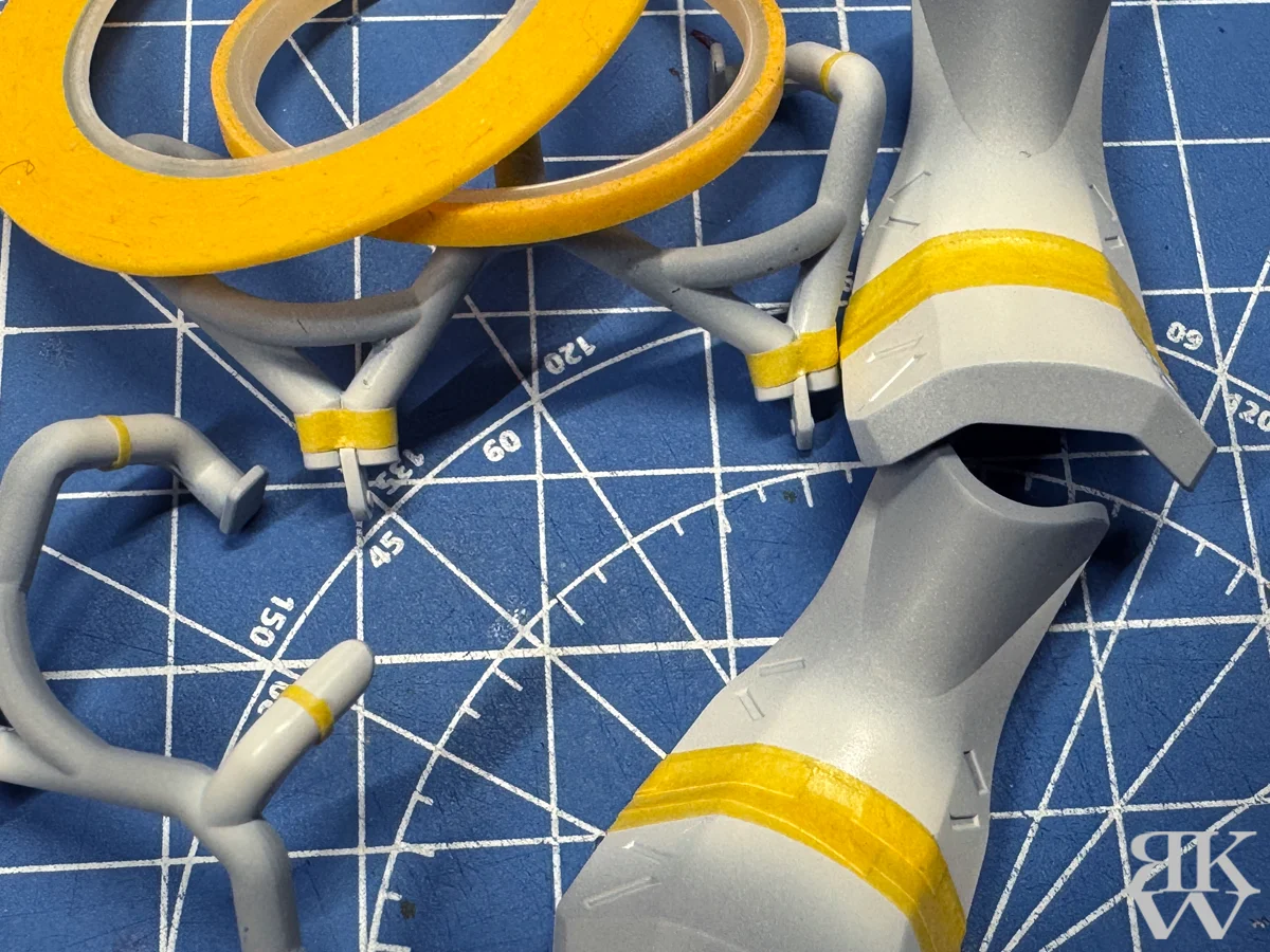 腕部と脚部の白帯は、シールではなくてマスキングして塗装。